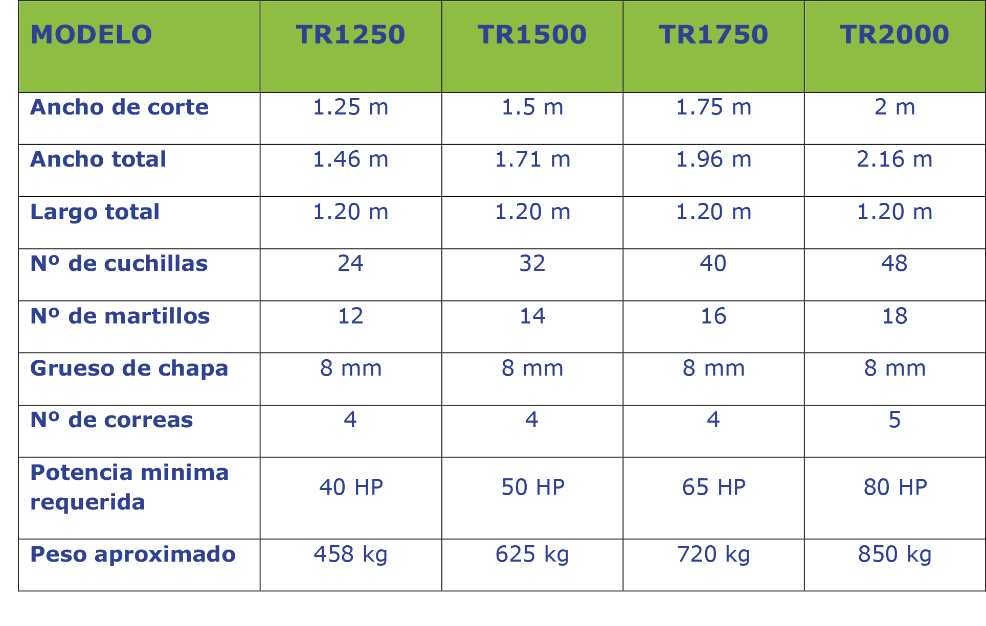 Se trata de unas máquinas indispensables para explotaciones agrícolas. Al reducir con el triturado el tamaño de los restos vegetales, estos se pueden enrunar fácilmente en la tierra con el labrado posterior para que se descompongan en la tierra. Es un modo de aprovechar los nutrientes de los restos vegetales, al facilitar así su descomposición e incorporación al suelo.